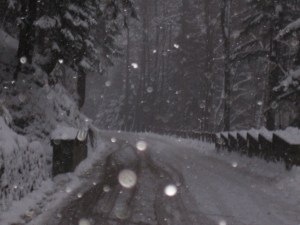 Lisa has decided to wait for the horse and carriage. I chose to walk down. No one else has made this choice and I am alone on this beautiful snowy road. I fall a few times where it was steep and slippery . I was trying to get down before it got dark. It was peaceful and quiet and I missed skiing.