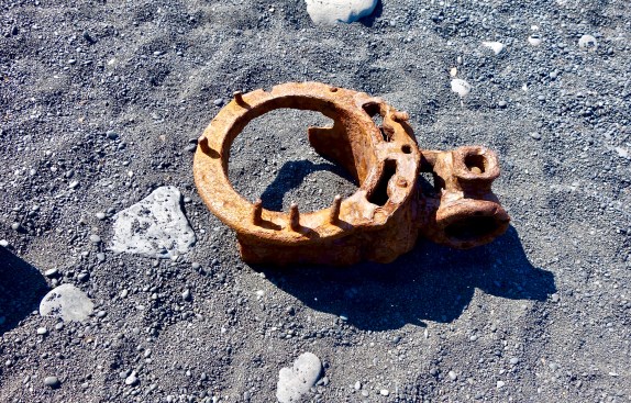 This is a portion of beach with iron pieces from a British shipwreck in 1948 (which are kept here in memory of the brave fishermen who lost their lives).
