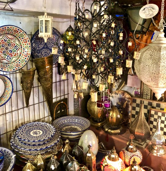 Glittery Moroccan lamps, colorful silk and leather products are fun to look at and buy.